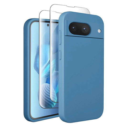 SUW for Google Pixel 8 Case with 2 Screen Protectors[Full Camera Protection]Soft Anti-Scratch Microfiber Lining InsideSilicone Shockproof Protective Phone Case for Google Pixel 8Blue
