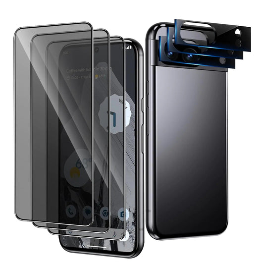 NECARSIN [3+3 Pack] for Google Pixel 8 Pro Privacy Screen Protector+Camera Lens ProtectorCase FriendlyAnti-ShatterBubble Free for Google Pixel 8 Pro Privacy Screen Protector 5G